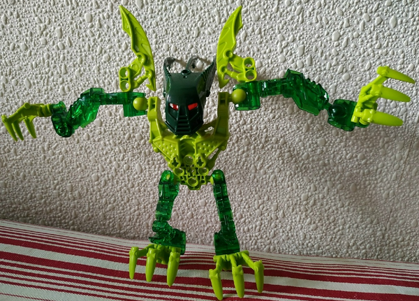 Les Final Fighters de leur petit nom sont parfois présentés comme des produits chinois et parfois russes. Dans tous les cas, on est d’accord pour dire que c’est une gamme de jouet qui cherchait grandement à copier BIONICLE, de façon plus ou moins dissimulée. Certains modèles sont carrément repris des designs de vrai sets Lego, comme Krekka ou Makuta ci-dessus.